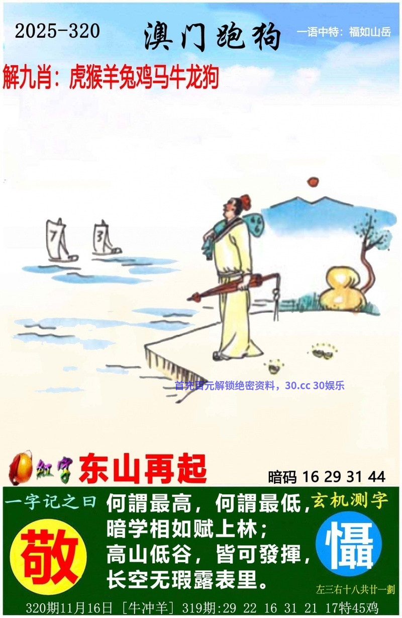 【鬼谷子】325期:“在六同开富不轻”这句话,从字面意思上来看,“三六同开”可能指的是某种与数字3和6相关的机遇或条件同时出现或开启的情况,而“富不轻”则可能意味着这种条件下带来的财富或者好处是相当可观的 【八肖】:羊蛇狗马牛鸡鼠虎 【五肖】:羊蛇狗马牛 |