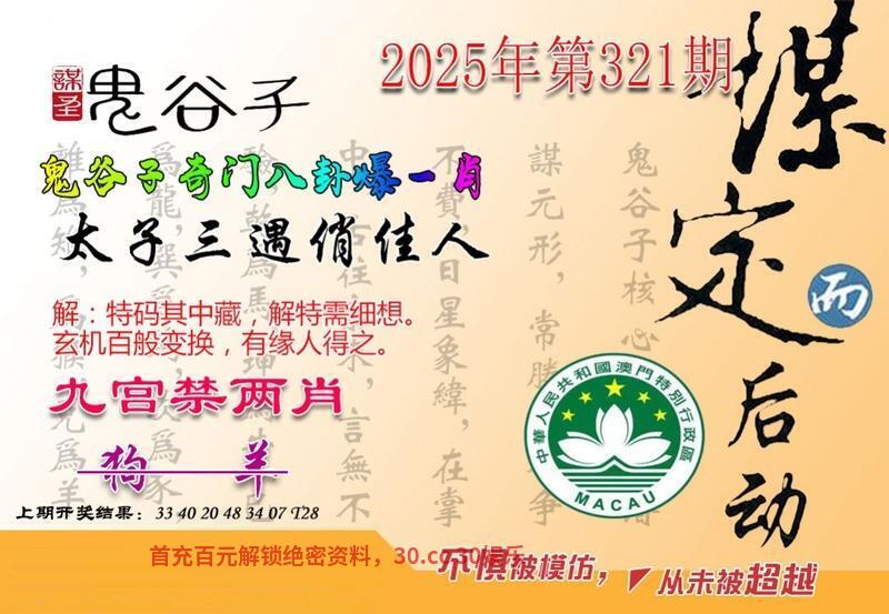 【鬼谷子】321期:“太子三遇俏佳人”指太子在不同的情境下三次遇到了美丽的女子,这三次相遇可能对太子的生活产生了重要影响。这些相遇可能是浪漫的,也可能预示着某种命运的安排 【八肖】:蛇兔虎龙牛猪羊狗 |