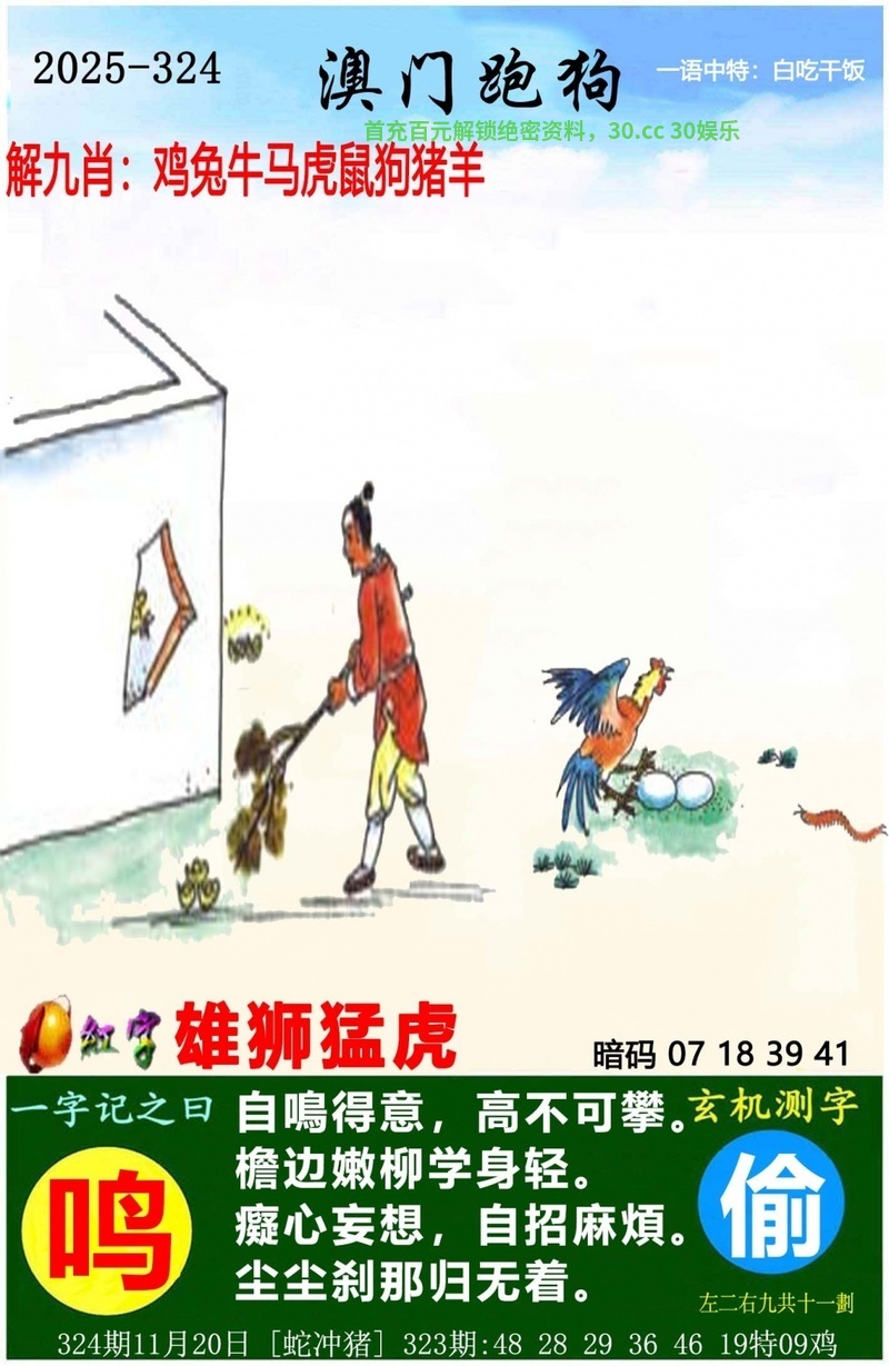 | 323期:绝杀一肖【鸡鸡鸡】开鸡09错 |